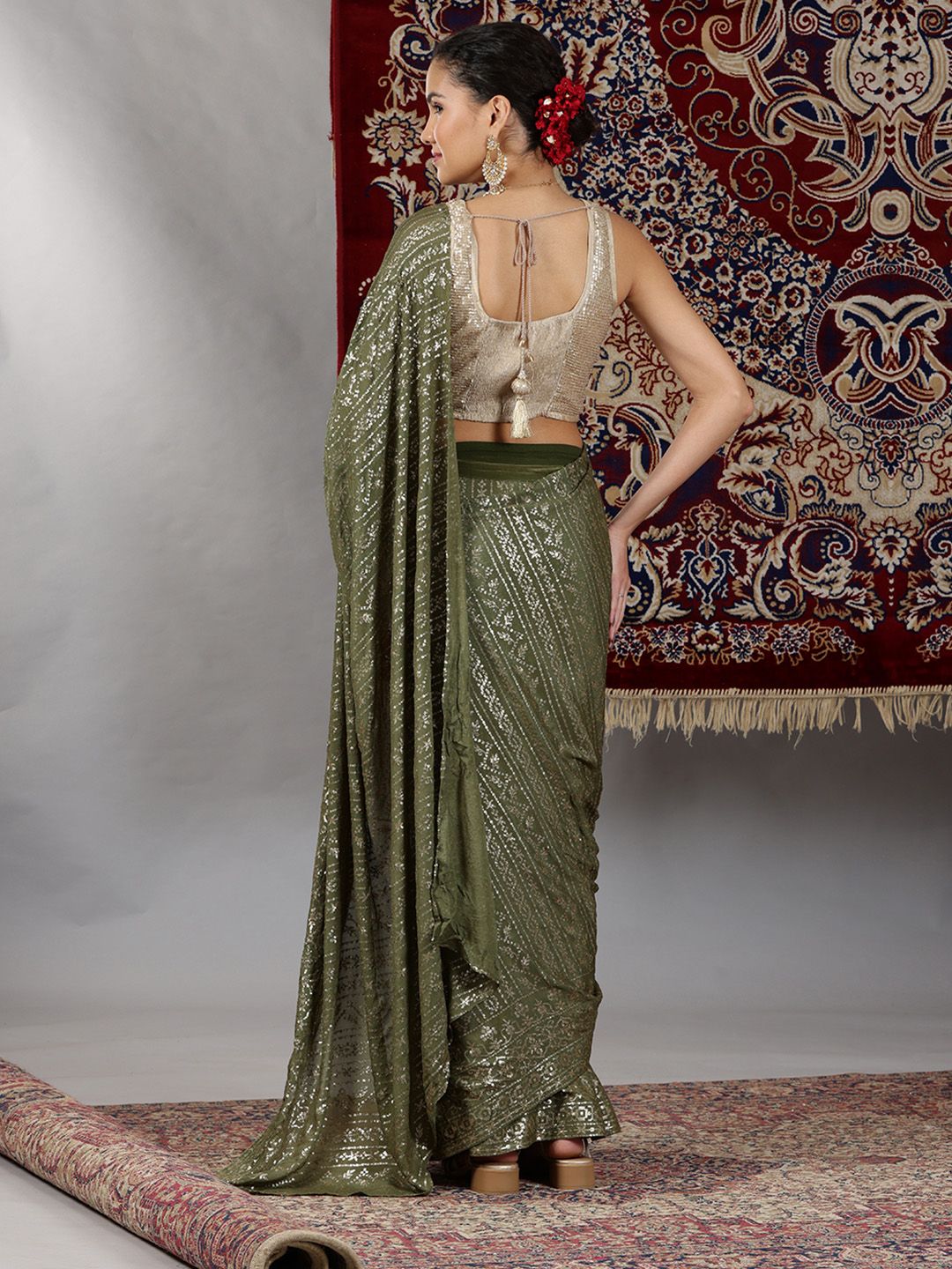The blouse worn by the model could be for modelling purpose only, please check the image of the actual blouse piece