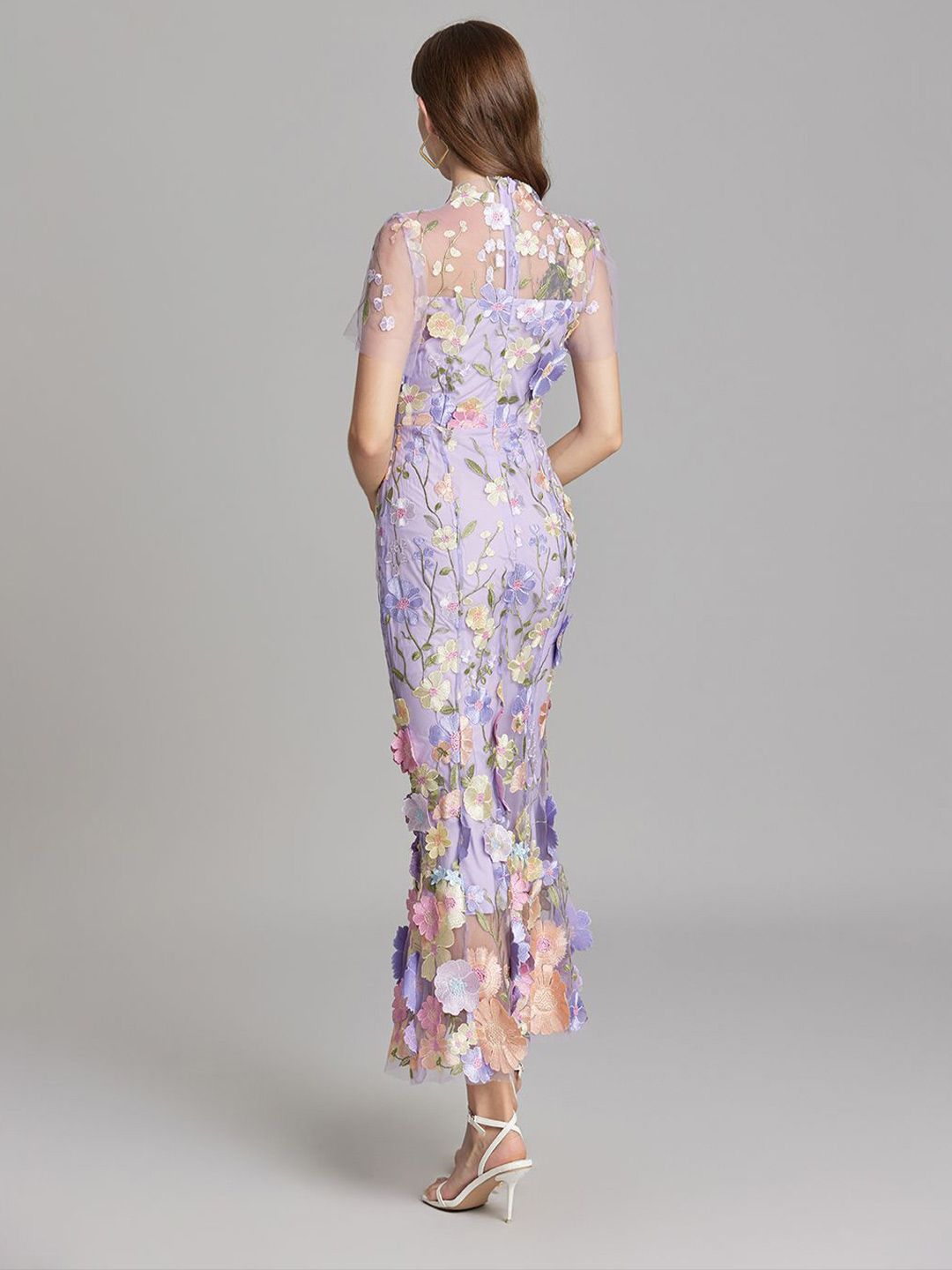 • Maxi length in flounce hem hem