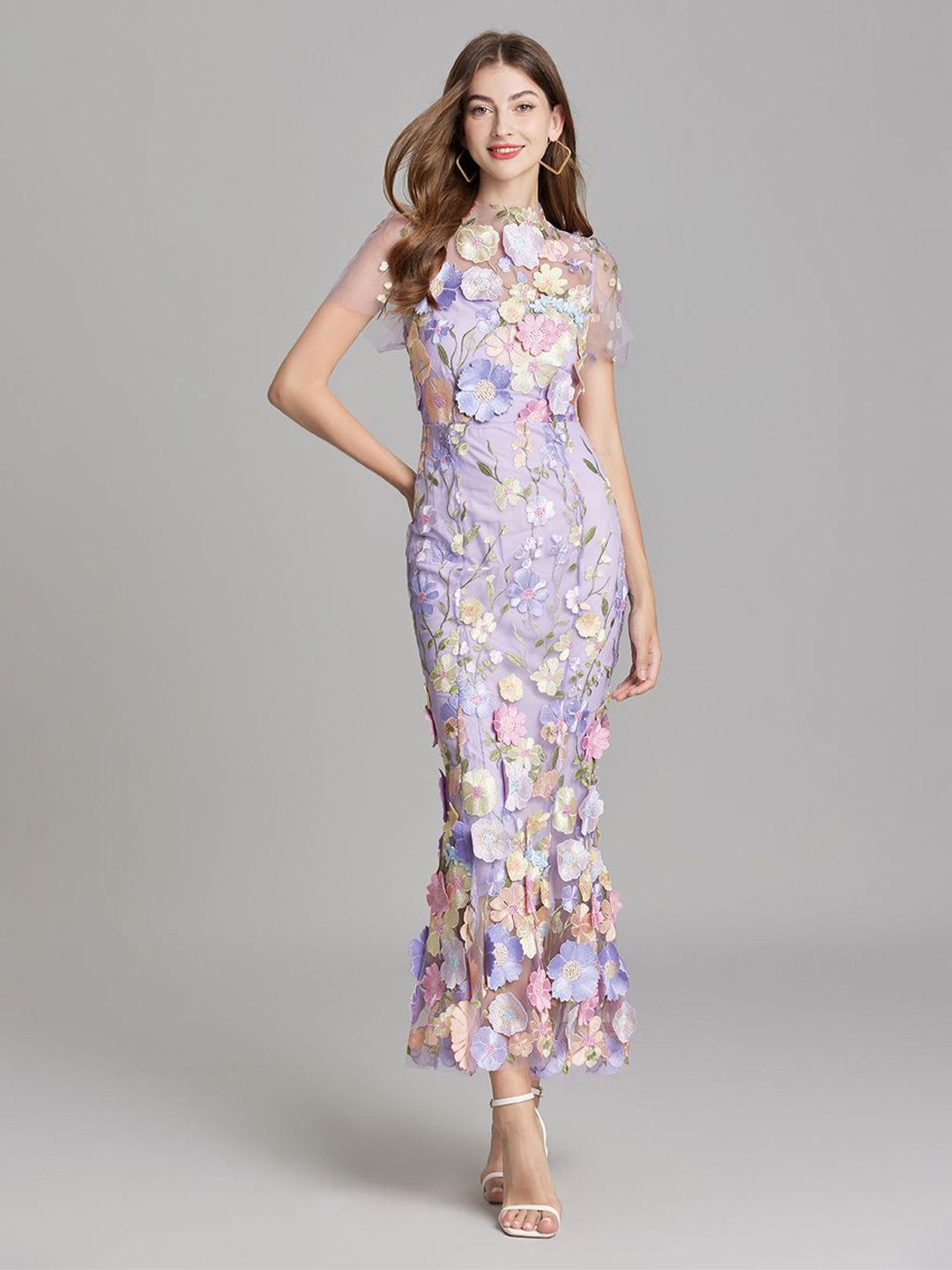 • Purple floral print maxi dress