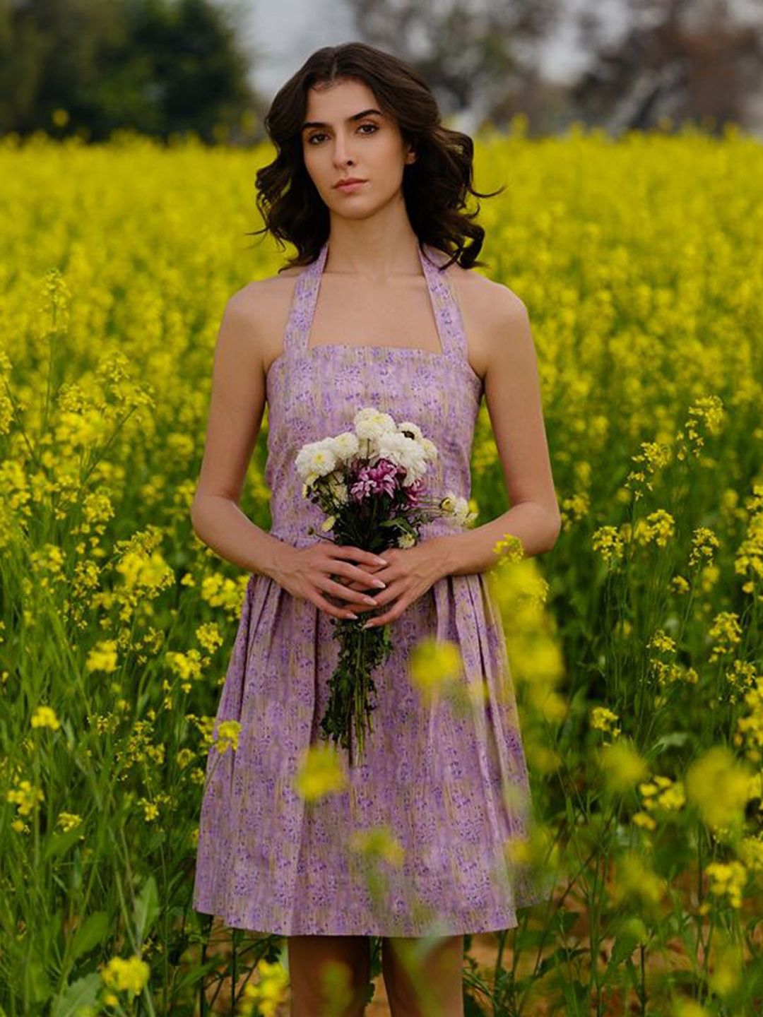 • Lavender floral printed fit & flare dress