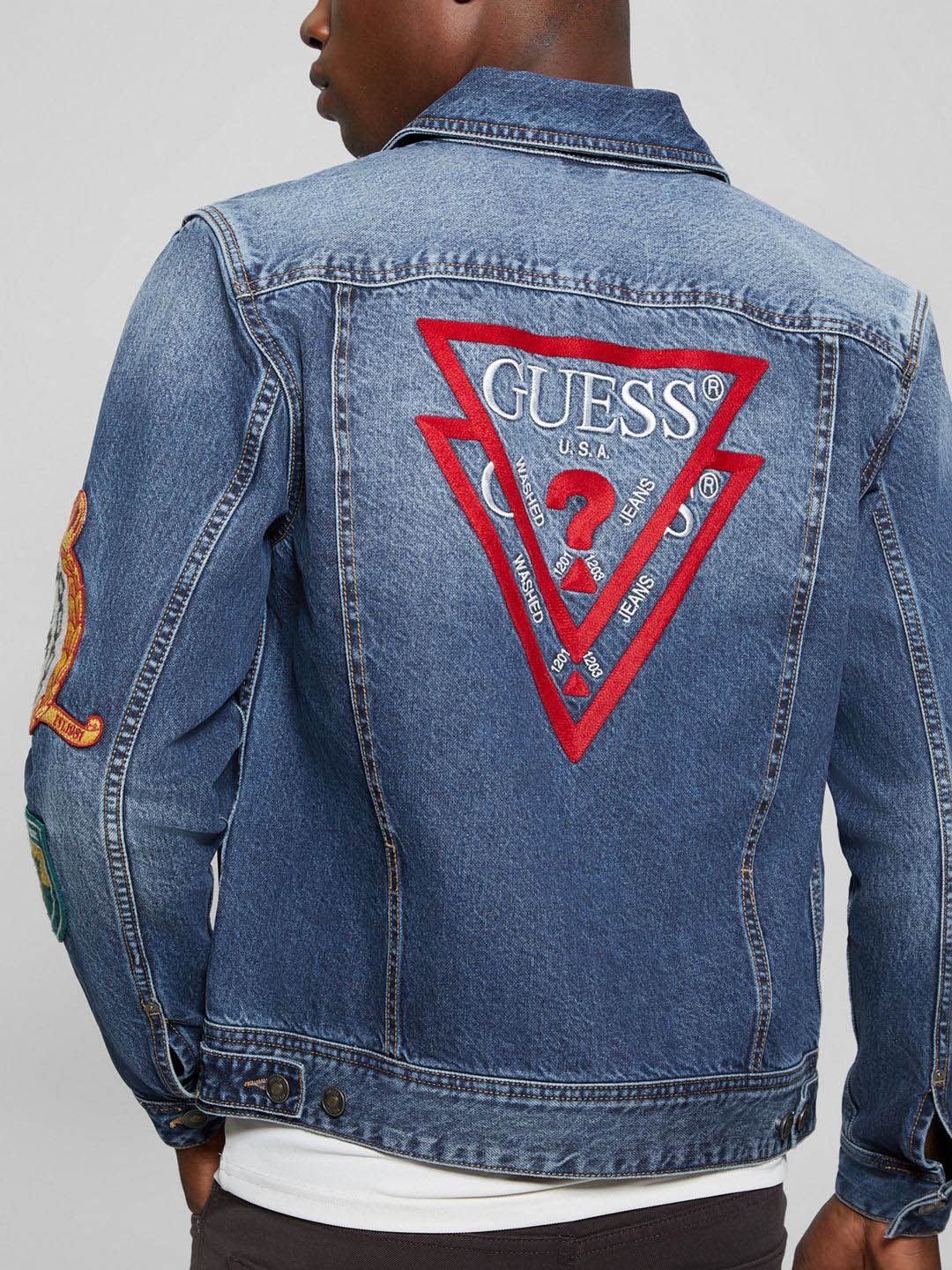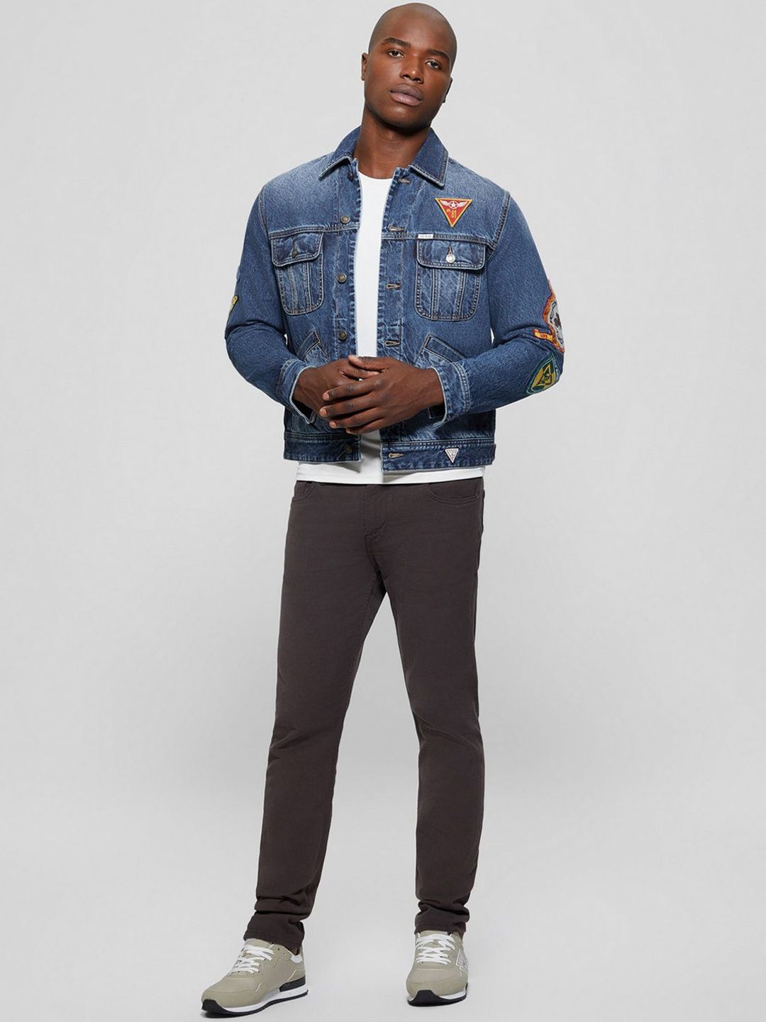 GUESS Men Spread Collar Washed Solid Cotton Casual Denim Jacket