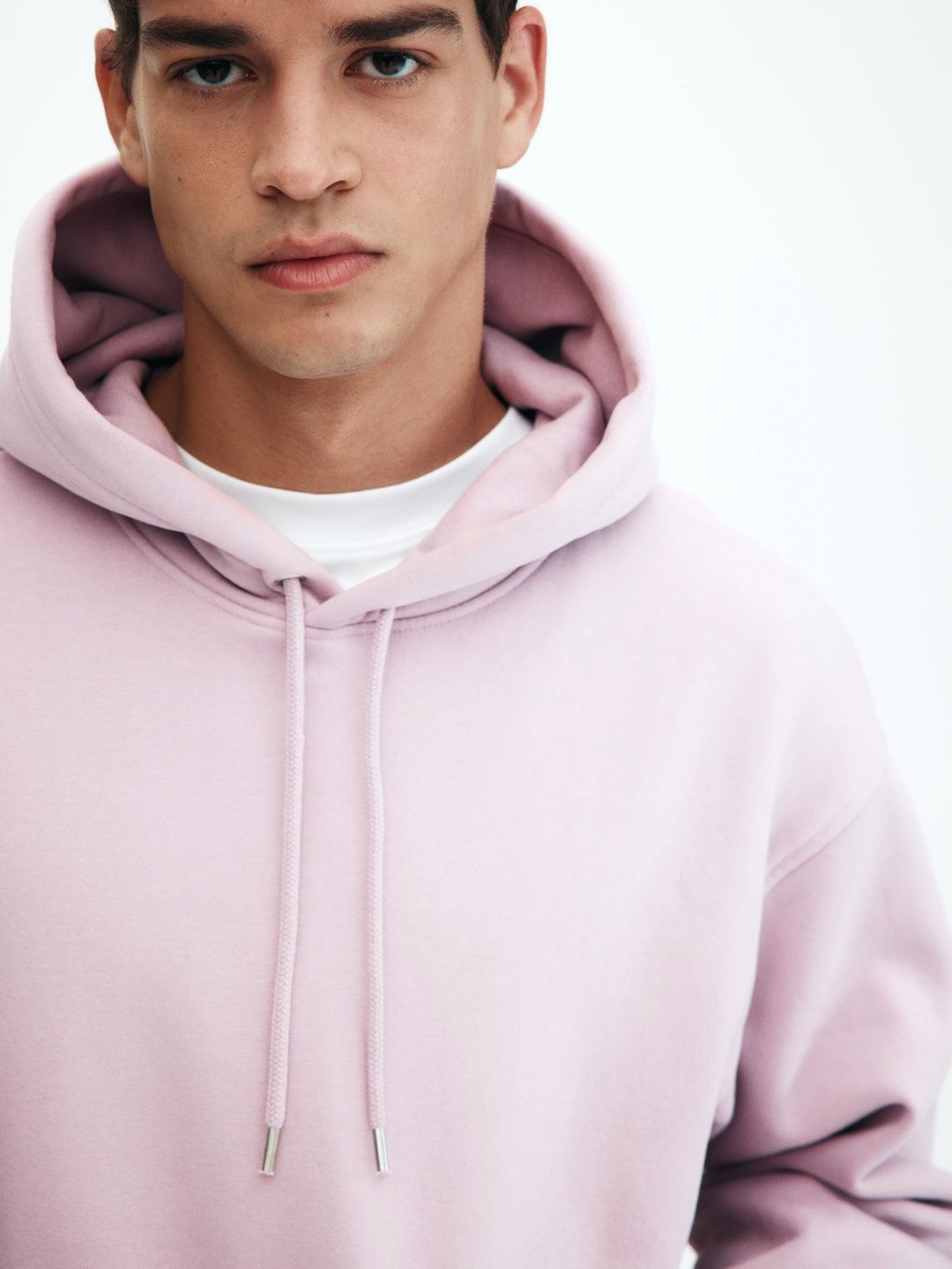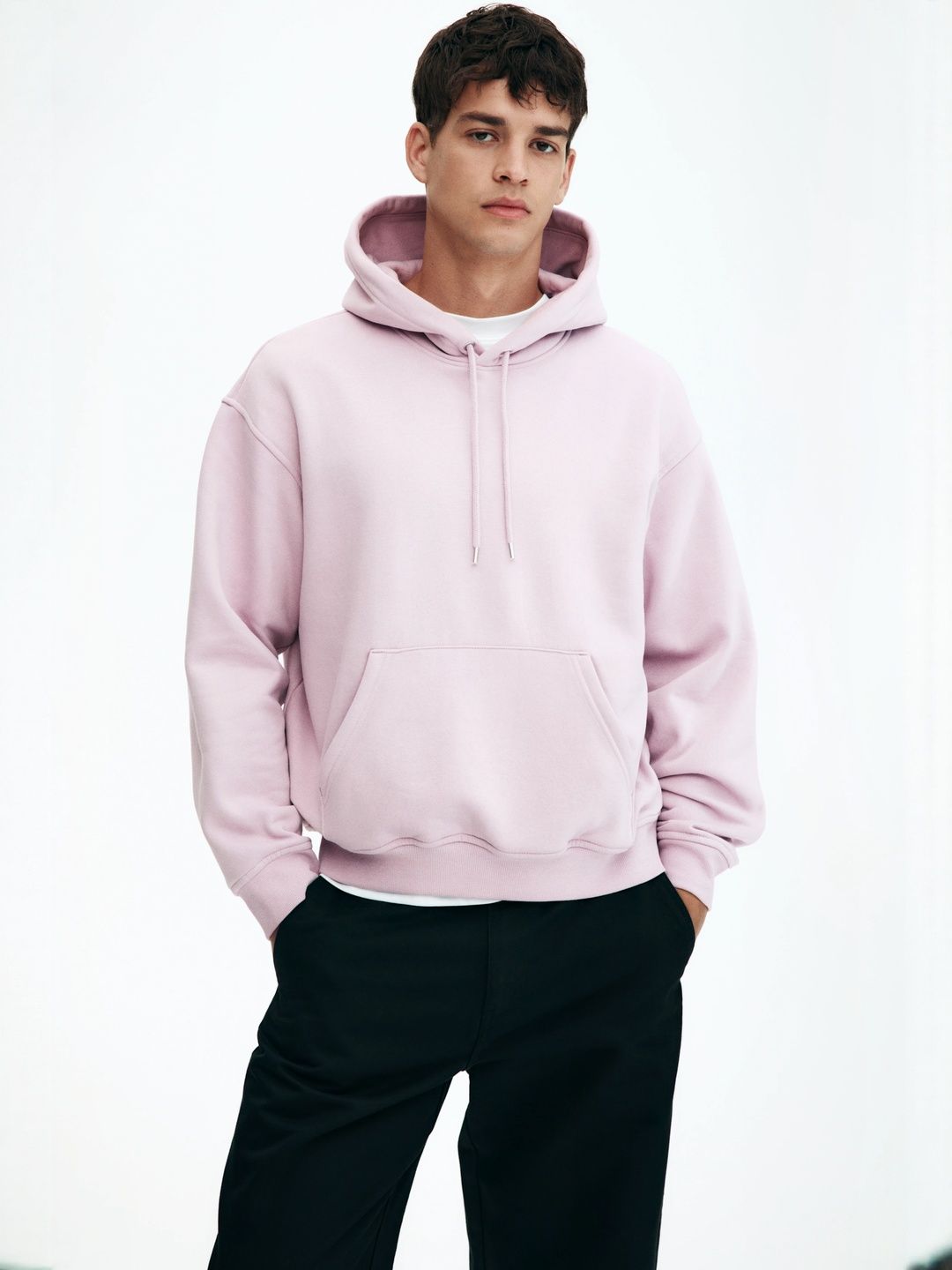 Hoodie in midweight sweatshirt fabric made from a cotton blend with a soft brushed inside. Jersey-lined, drawstring hood, dropped shoulders, long sleeves, a kangaroo pocket and wide ribbing at the cuffs and hem. Loose fit for a generous but not oversized silhouette.