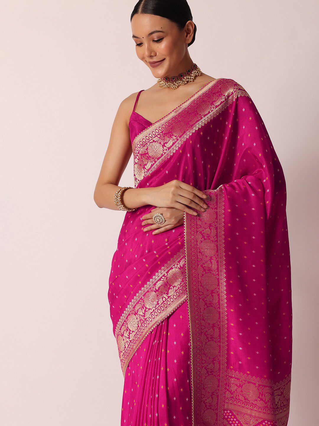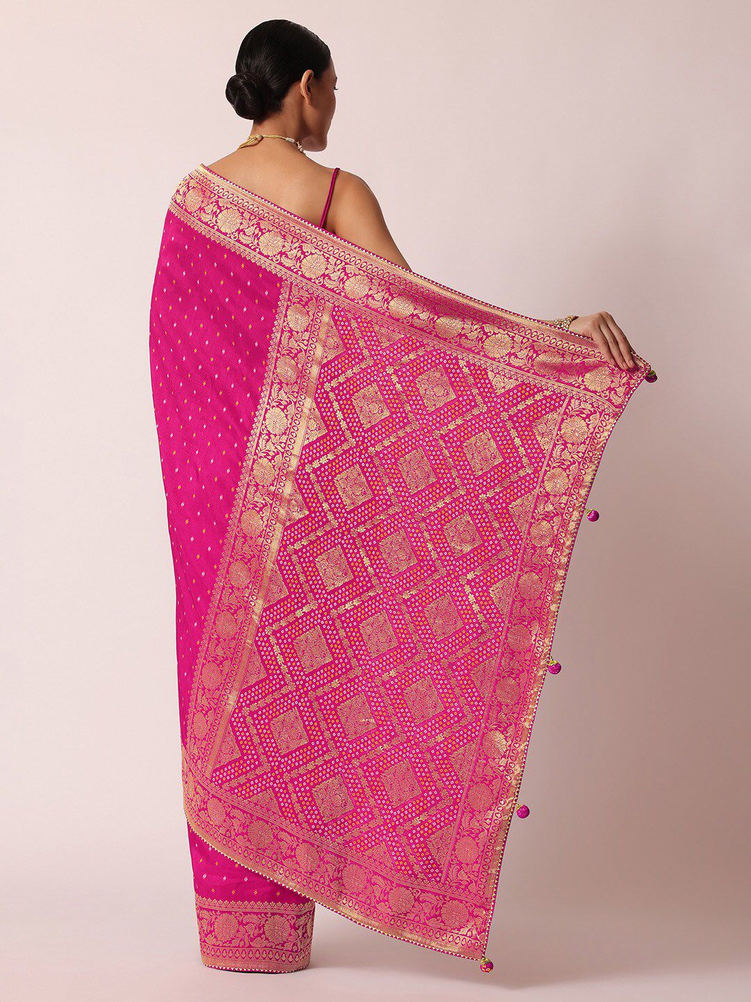 The blouse worn by the model might be for modelling purpose only. Check the image of the blouse piece to understand how the actual blouse piece looks like.