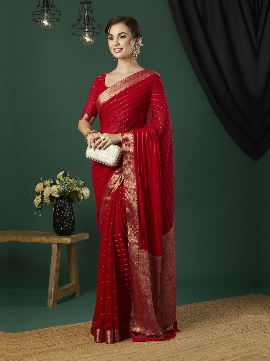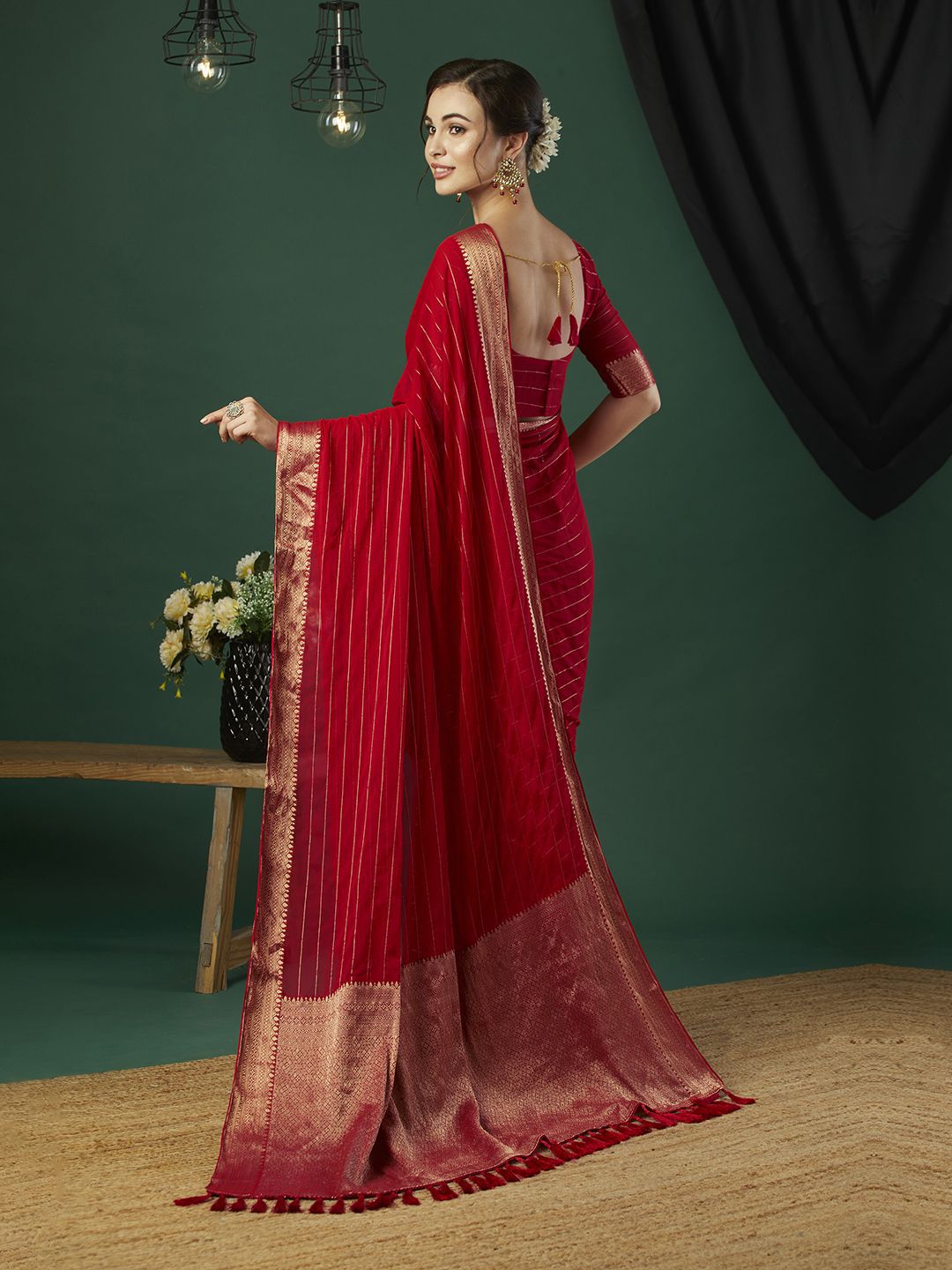 The blouse worn by the model might be for modelling purpose only. Check the image of the blouse piece to understand how the actual blouse piece looks like.