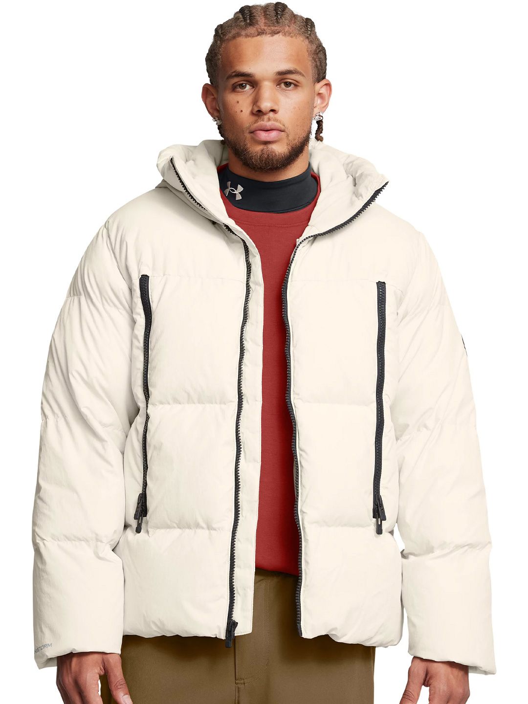 White solid jacket, has hooded collar, zip closure, long sleeves & straight hem