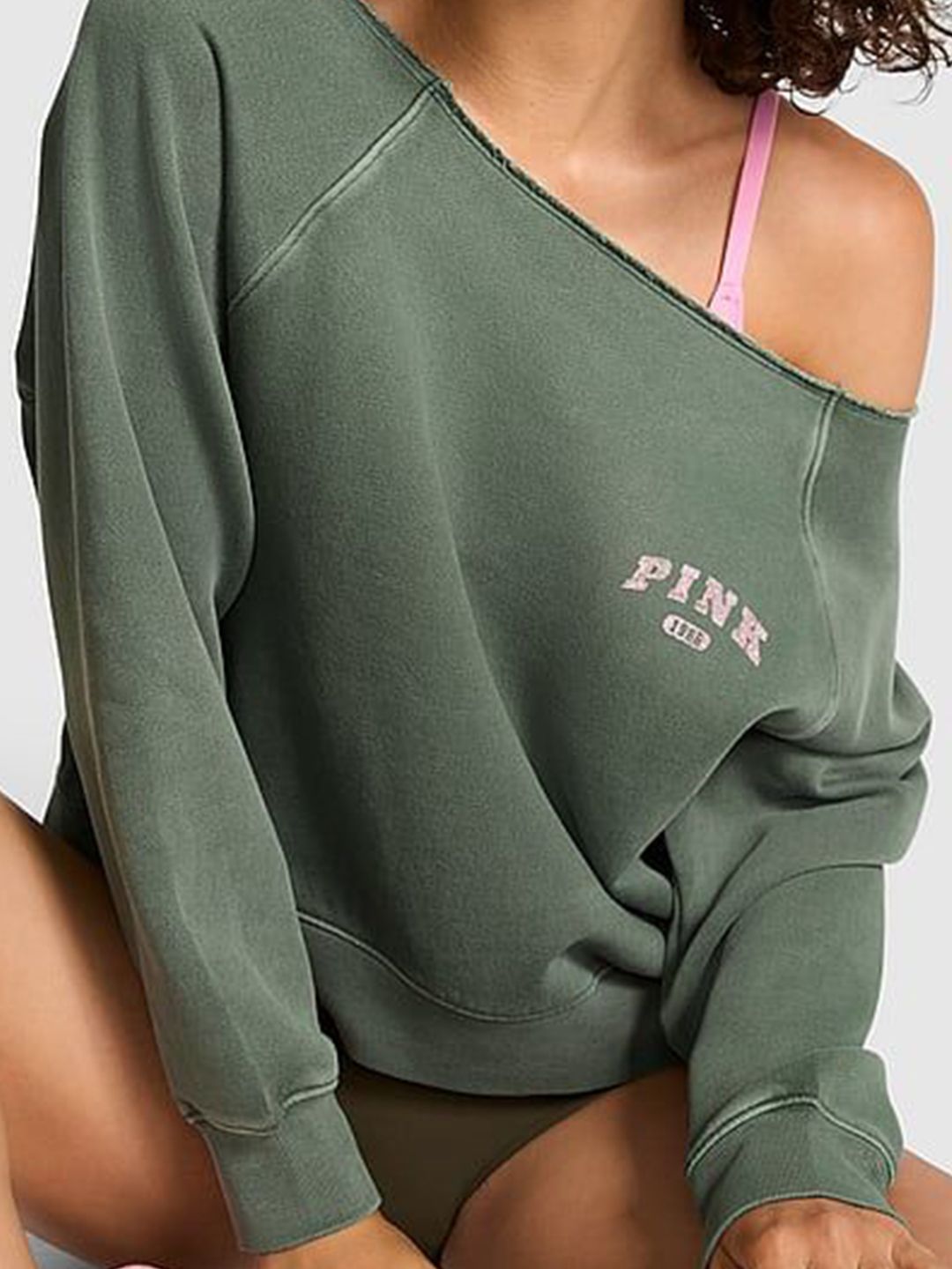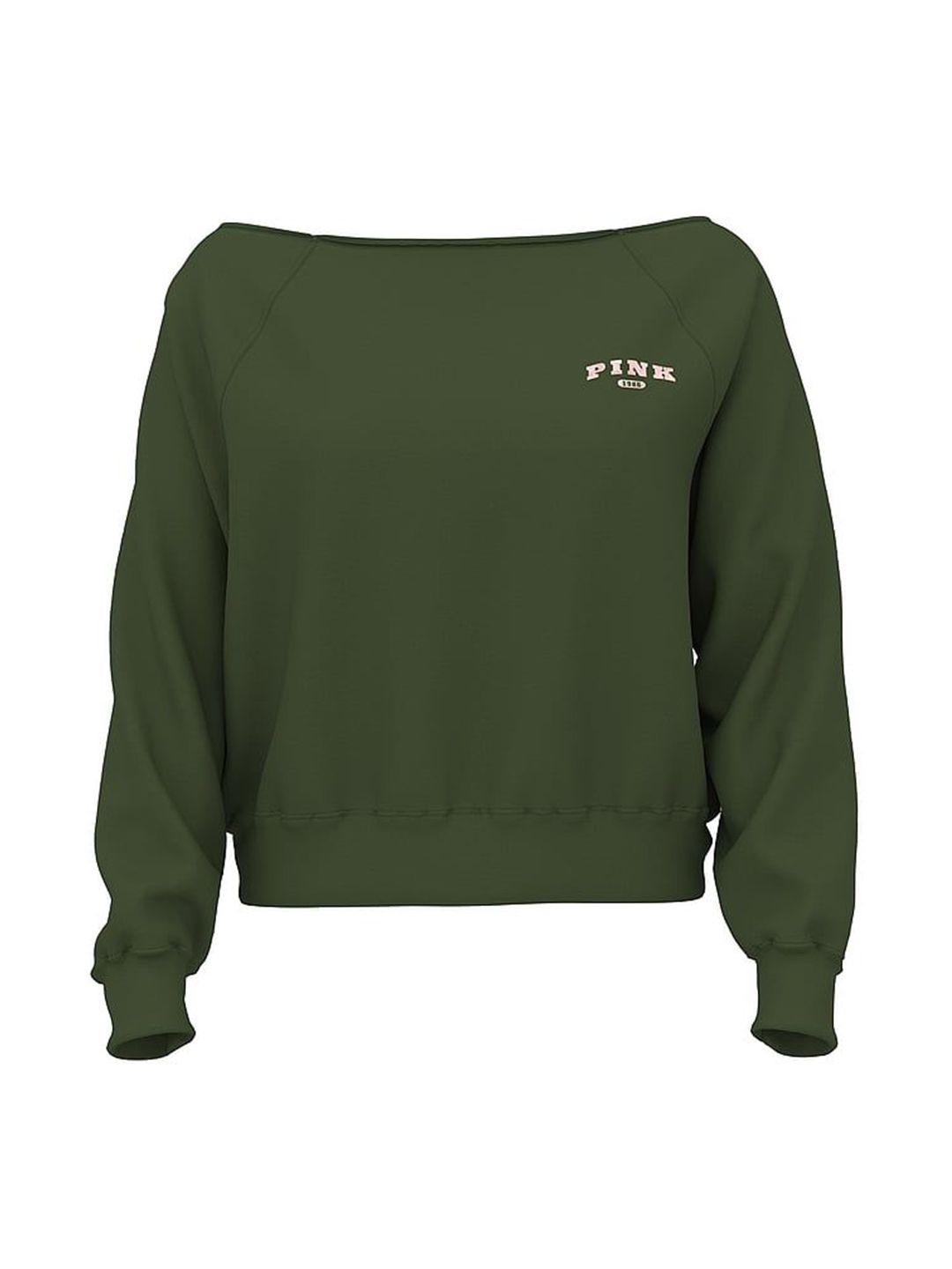 Green solid sweatshirt has a round neck, na pockets, long sleeves, closure, straight hem