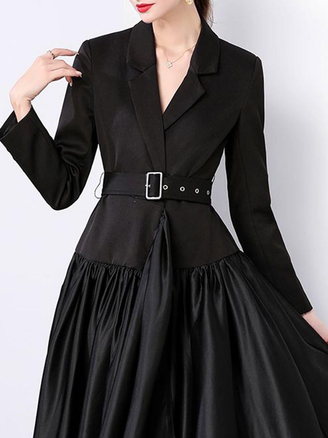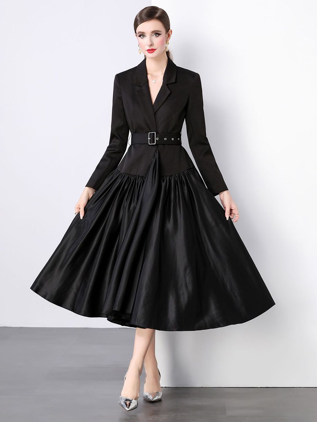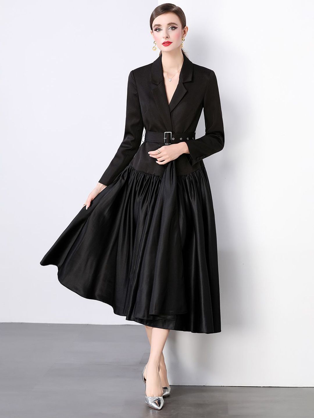 - Black solid fit & flare dress